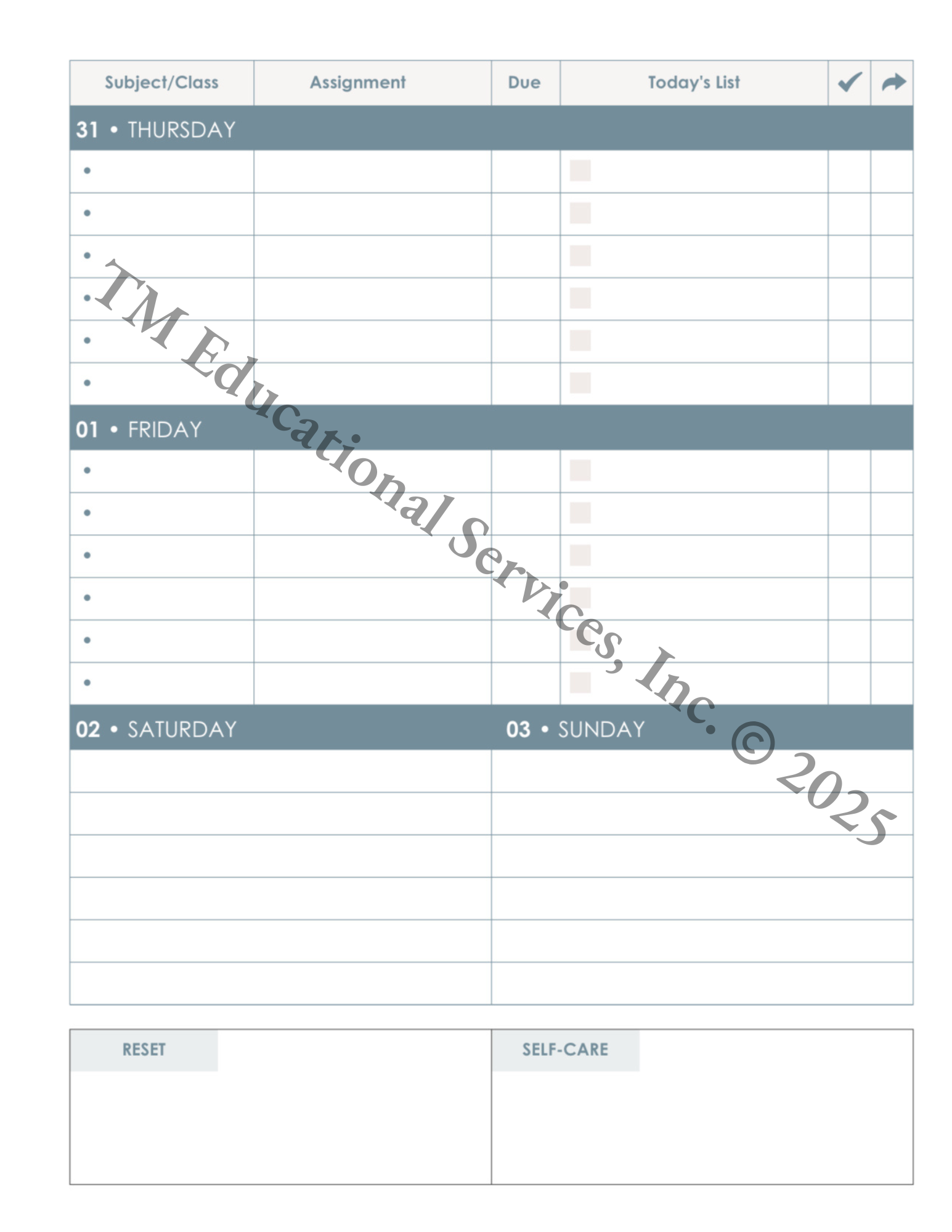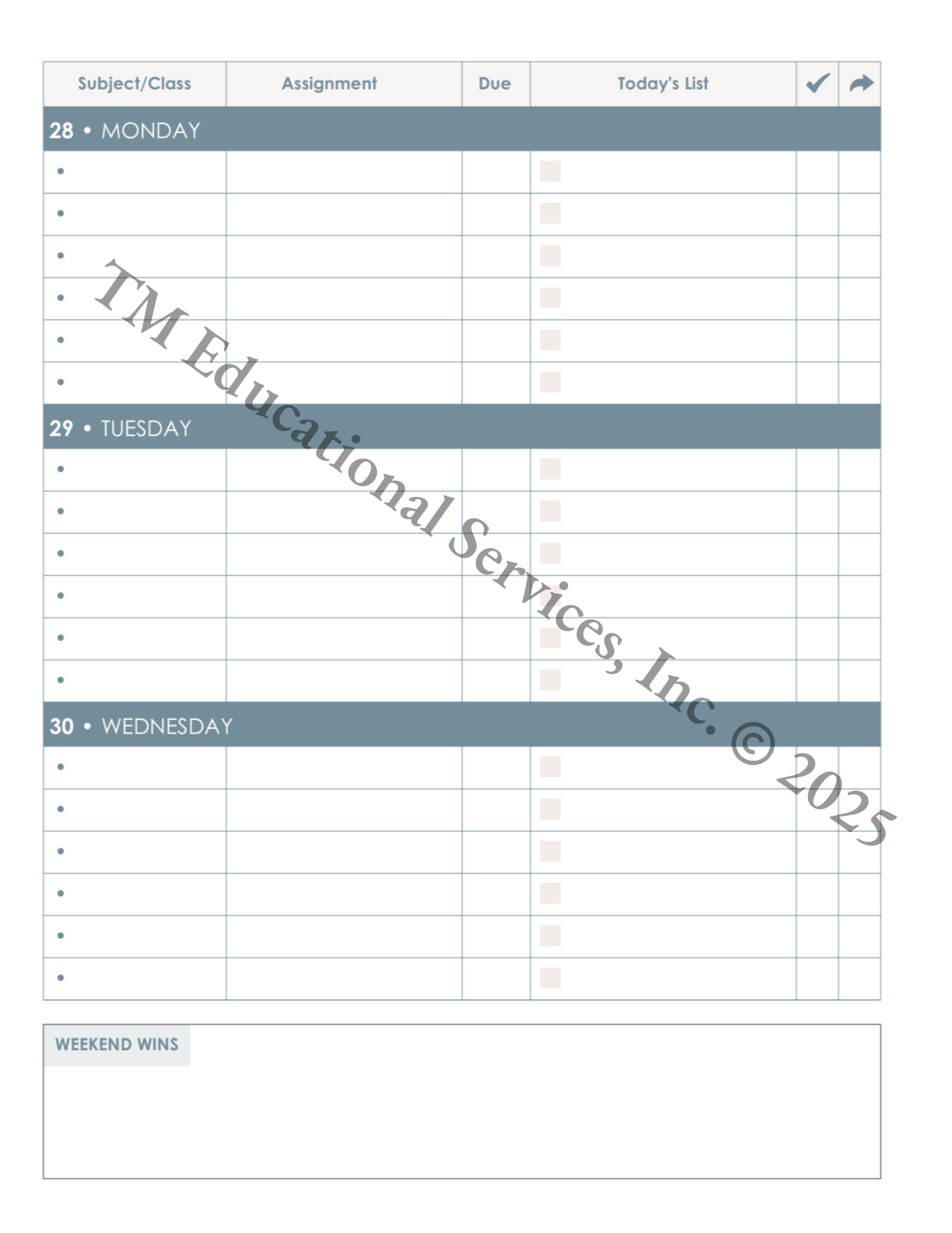 This professionally designed, spiral bound, academic planner helps students strengthen organization, build consistent routines, and keep track of their priorities—without the clutter of overly busy layouts. Designed for middle and high school students, it includes weekly spreads, planning tools, and simple systems to support executive functioning and goal setting. Ideal for families, educators, and support professionals seeking a focused, user-friendly tool for academic success.